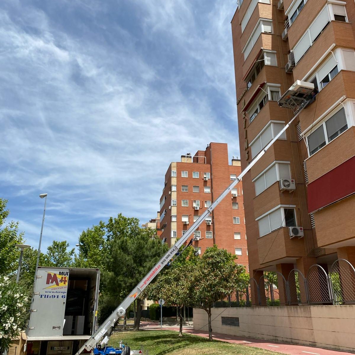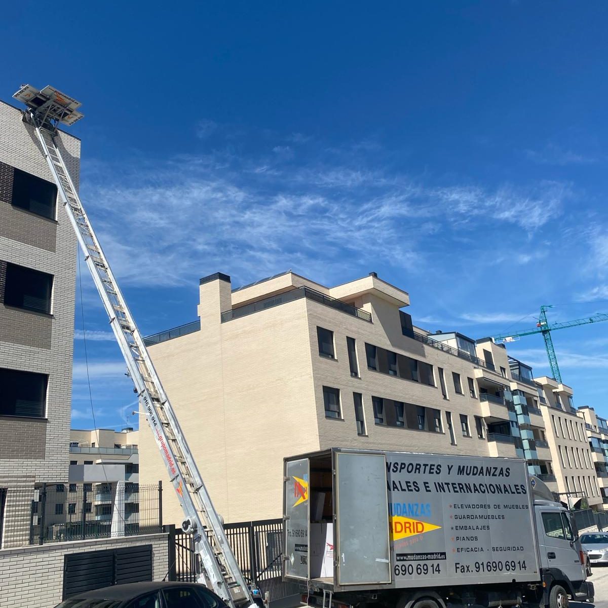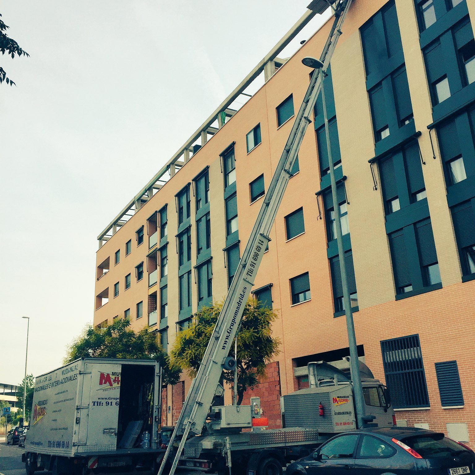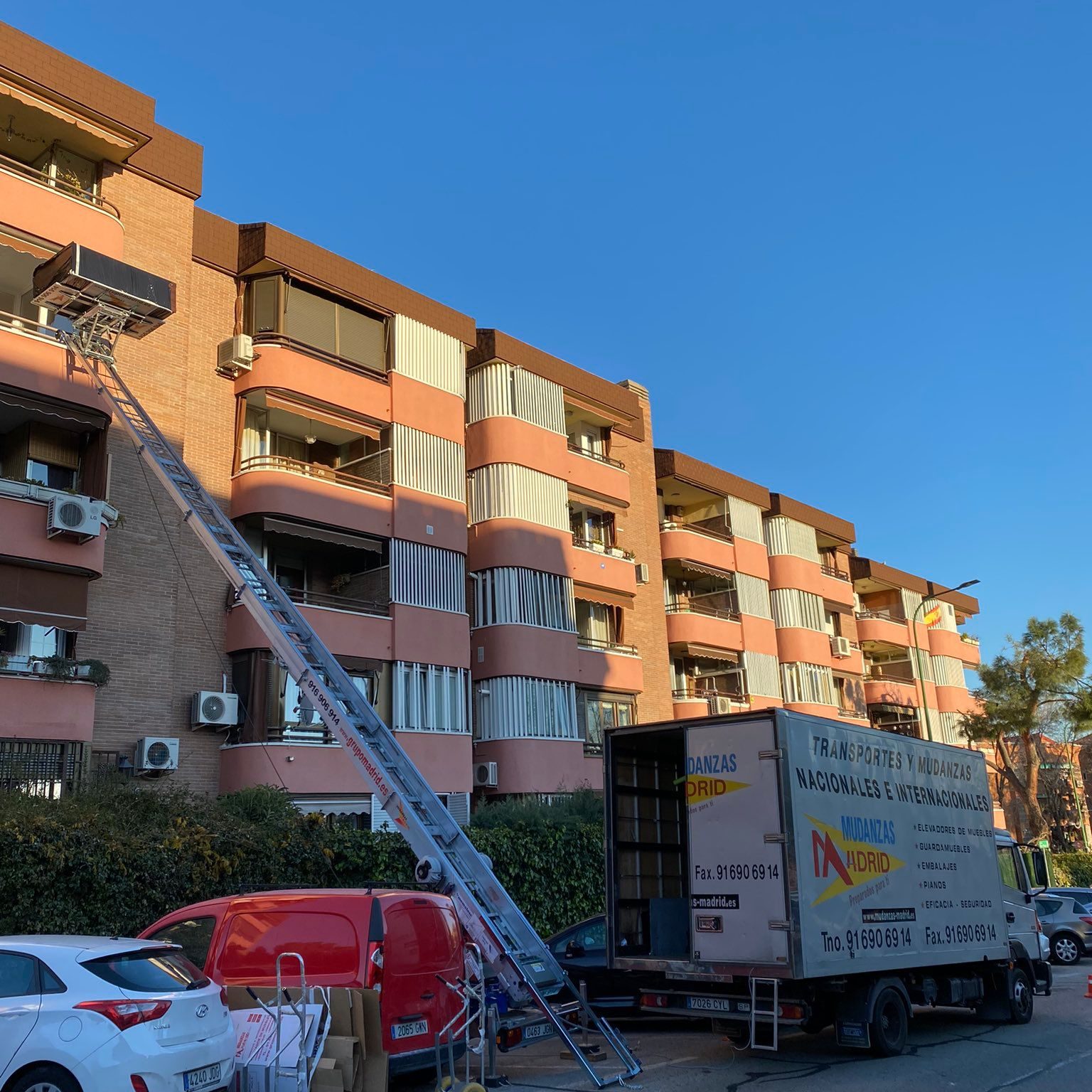Disponemos de las más modernos tecnologías en elevadores de por fachada. Estos elevadores permiten tanto la bajada como la subida de los muebles desde su piso al camión, en ocasiones directamente.