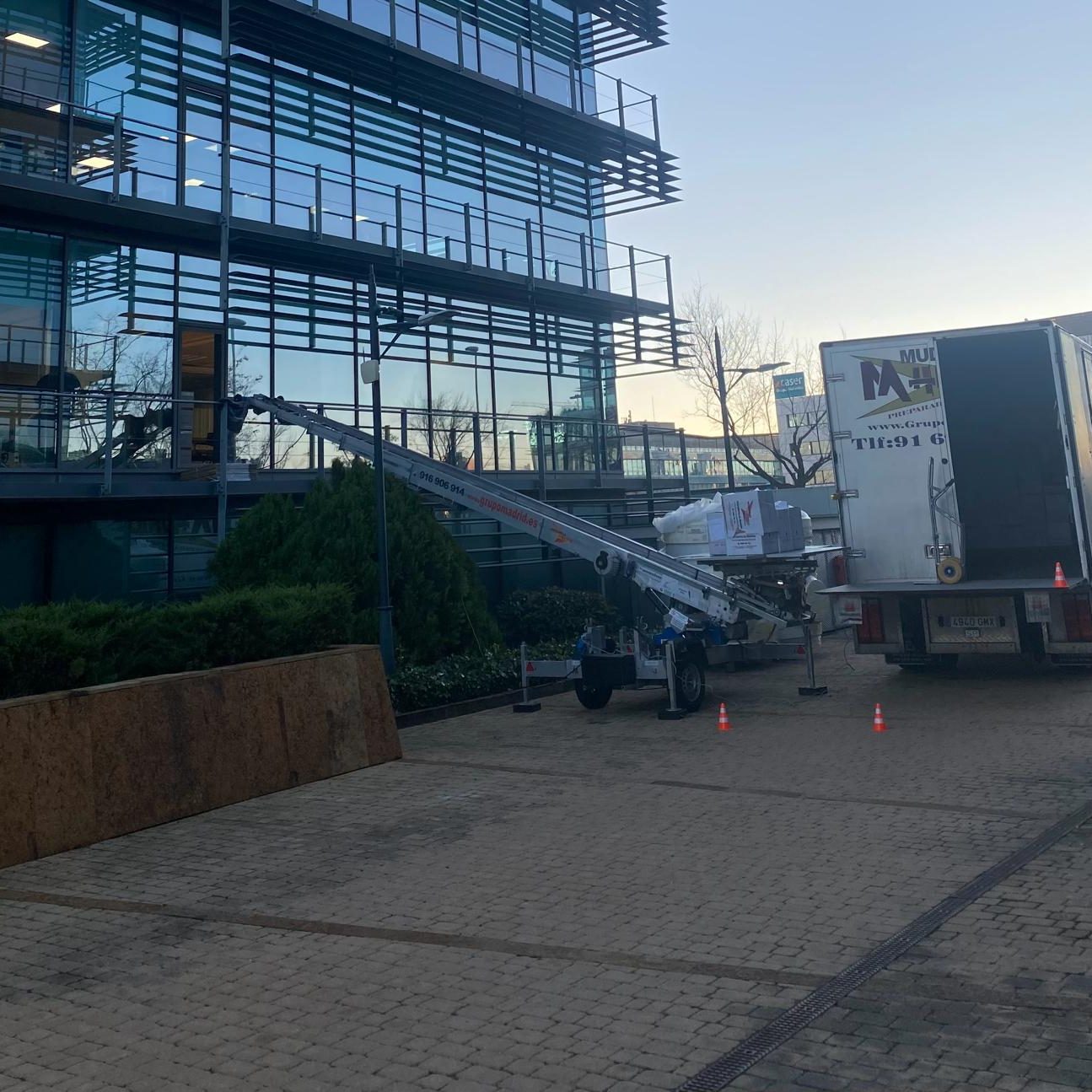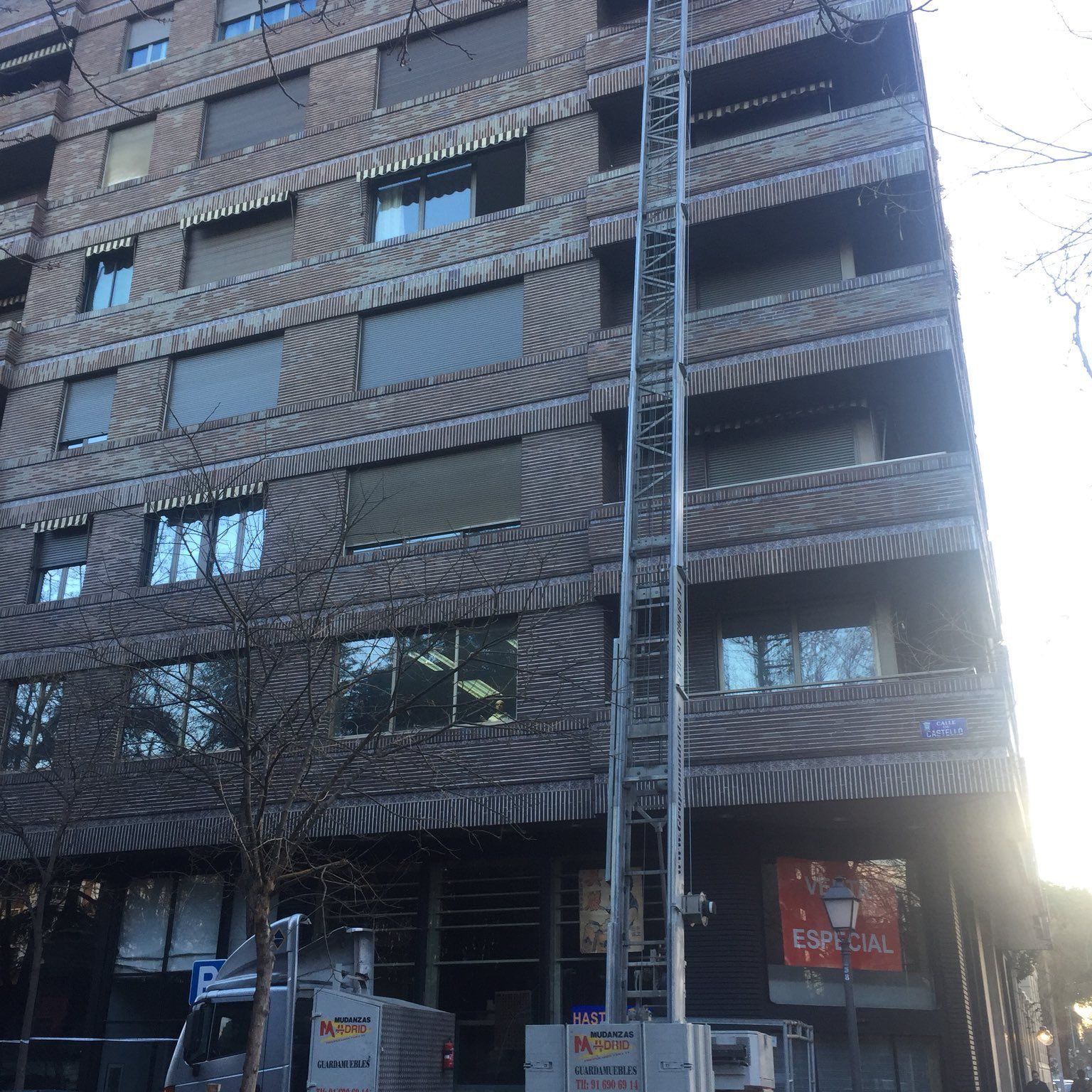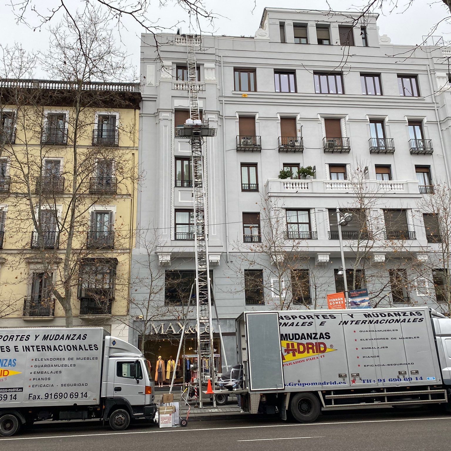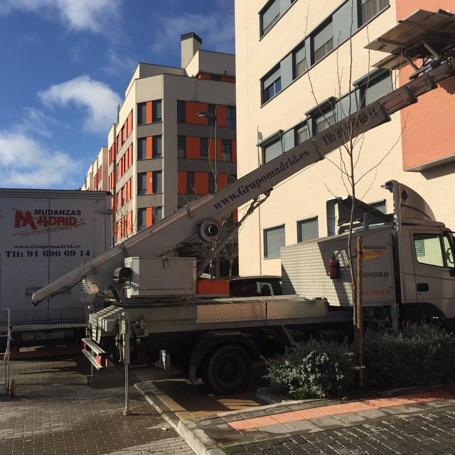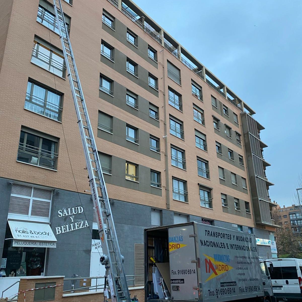 Disponemos de las más modernos tecnologías en elevadores de por fachada. Estos elevadores permiten tanto la bajada como la subida de los muebles desde su piso al camión, en ocasiones directamente.